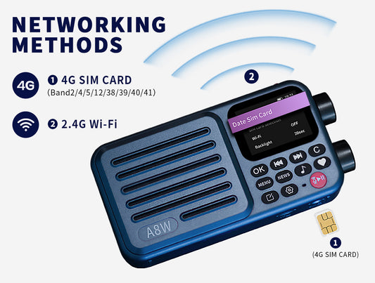A8W Pocket Smart Radio – Portable Internet & FM Radio with Wi-Fi, 4G, Voice Search & Micro-SD Support